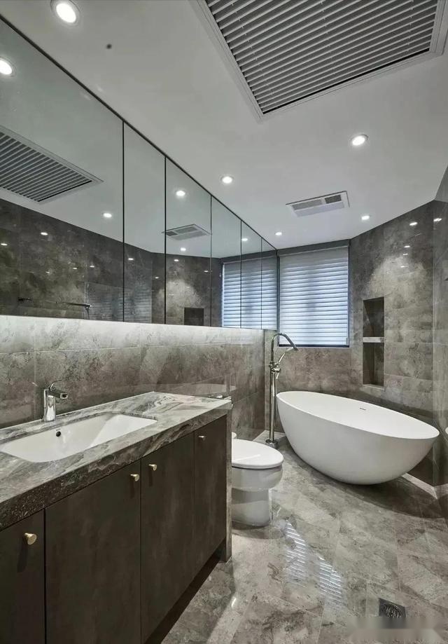 大理石加上水泥的设计让人感觉低调奢华,冷酷又不失个性,非常符合现代都市人追求舒适放松、简单低调的生活方式。水泥的颜色素雅,更加衬托出大理石花纹。