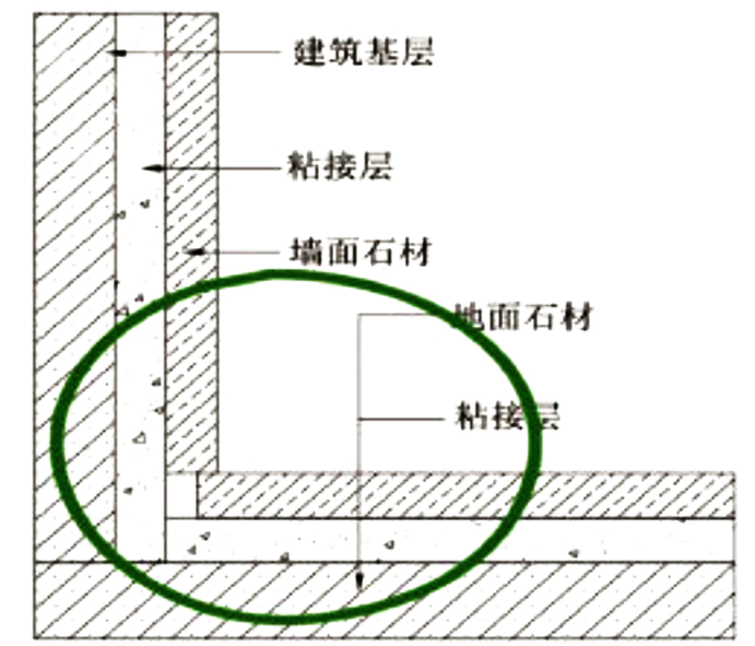 2、若无法实现墙地面完全对缝时,应把不对缝处留在空间角落处;或采用波打线来规避墙面石材与地面石材直接对缝的情况。