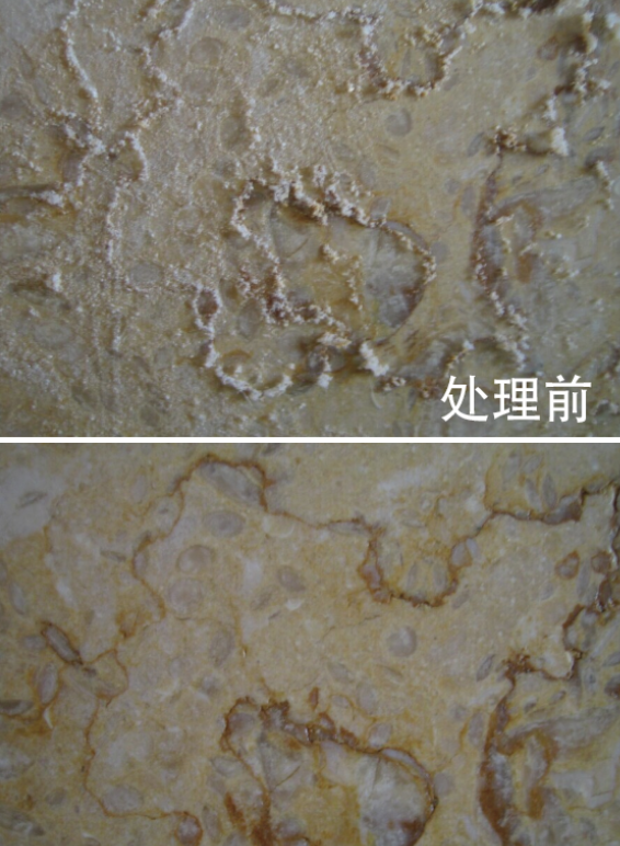 4、防护:用专用的防护剂进行石材防护处理并打磨,每隔一周时间重复处理一次,大约处理2-3次后即可防止白华透过毛细孔溢出。