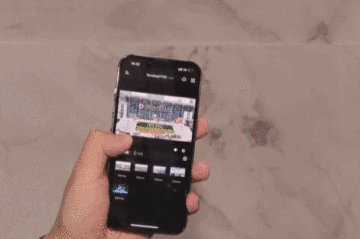在手机上轻点唤醒按键之后,您就能够看到,这一面自带有天然孔洞材质的石材墙面变身成了一个高清显示屏。工作人员说,这个显像石材表面采用了无机纳米材质,具有抗紫外线的功能,因此它比传统的LED屏要更持久、更耐用。