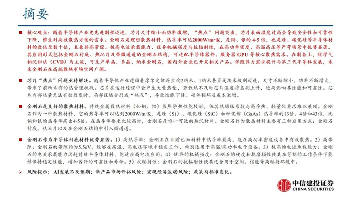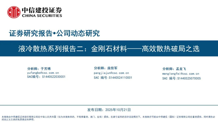 证券研究报告名称:《液冷散热系列报告二:金刚石材料——高效散热破局之选》