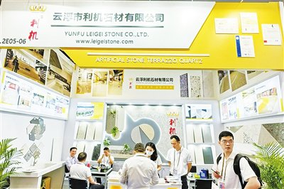 - 在第133届广交会现场,我市石材企业的展位吸引了众多客商驻足咨询。(资料图片)